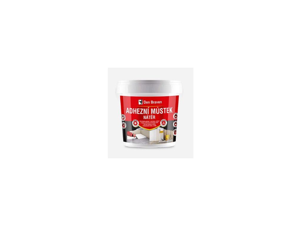 Adhezní můstek je jednosložkový bez rozpouštědlový bílý nátěr, který je možno použít v interiérech i exteriérech na vyzrálé omítky, nekonstrukční a pohledový beton, skleněné tapety, dřevěné, papírové, sádrokartonové povrchy na dřevotřísku, na OSB desky, umakart, obklady a dlažby apod. Jedná se o penetrační a zpevňující podkladový nátěr určený jako první nátěr všech savých i nesavých stavebních materiálů, které jsou následně upravovány stěrkami, akrylátovými barvami a omítkami atd. Lze jej použít i samostatně pro zpevnění a zvýšení hydrofobity povrchu. Výborný pod malířské barvy, pro dosažení jemného štukového efektu.Dodává se v balení 1kg, 5kg