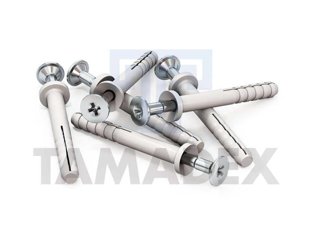 Natloukací hmoždinka se používají pro kotvení obvodových profilů sádrokartonových konstrukcí ke stávající nosné konstrukci, upevňování latí, rámů. apod. Vzájemná rozteč natloukacích hmoždinek se řídí typem konstrukce.POUŽITÍ: • pro kotvení obvodových profilů sádrokartonových konstrukcí • upevňování latí, rámů