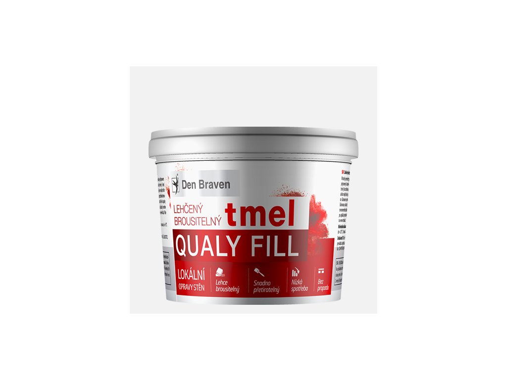 DEN BRAVEN Lehčený brousitelný tmel Qually Fill je určen pro lokální opravy, pro vyplňování malých i velkých prasklin v sádrokartonu, ve zdivu, betonu, v omítkách apod., přičemž vyhovuje požadavkům na brousitelnost.