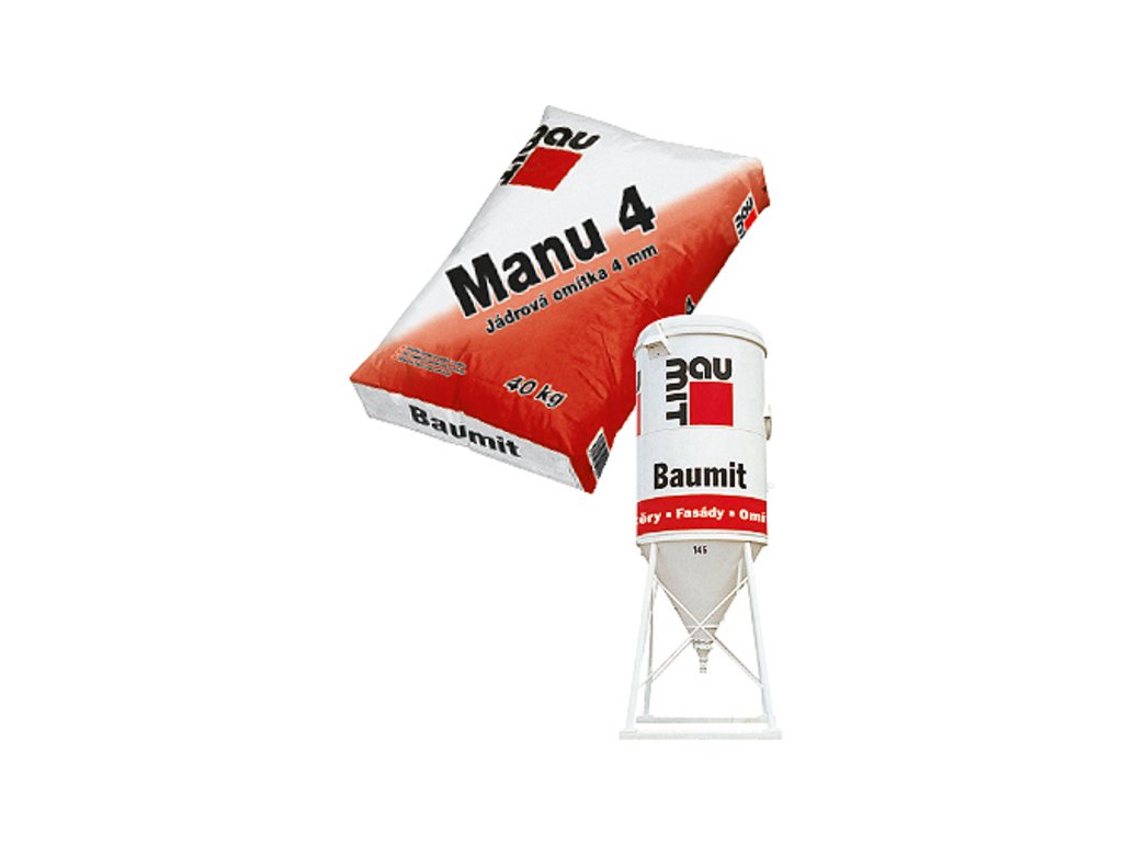Jádrová omítka Baumit Manu 4 je jádrová vápenocementová omítka zrnitosti 2mm vhodná pro interiér a exteriér.