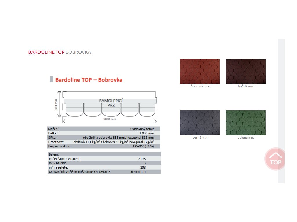 VLASTNOSTI: • Bardoline TOP odpovídá kvalitě evropského schválení ETA