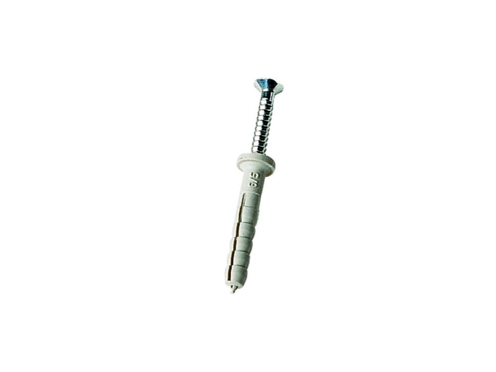 Součástí šroubu ke krycí liště Wakaflexu je natloukací hmoždinka.