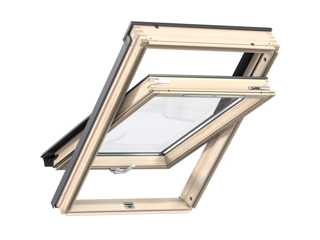 Střešní kyvná okna VELUX kategorie Standard je přírodní celodřevěné kyvné střešní okno v řadě GZL unikátním spodním ovládáním.